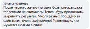 После первого же визита ушла боль, которая даже таблетками не снималась! Теперь буду продолжать, закреплять результат. Много разных процедур за один визит, очень эффективно! Рекомендую, кто мучается болями в спине